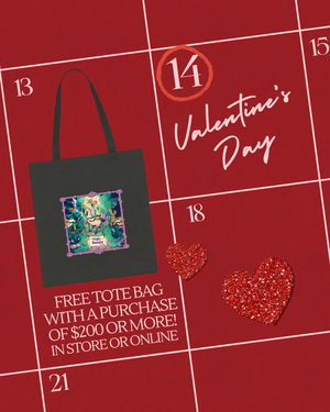 As a special Valentine's Day promotion we will be giving out FREE Frisky Business tote bags featuring our classic Frisky unicorn design for every purchase of $200 or more!