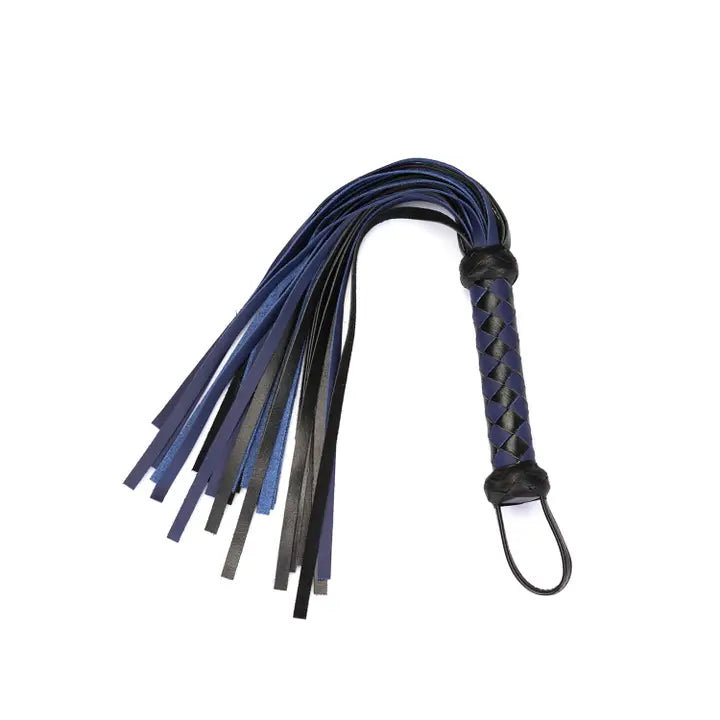 Classic blue leather flogger for breathtaking pain and pleasure play Handcrafted for the utmost quality The wrist loop allows for confident swings and easy storage.