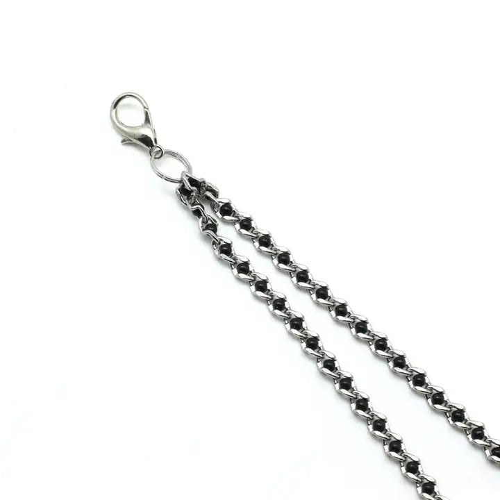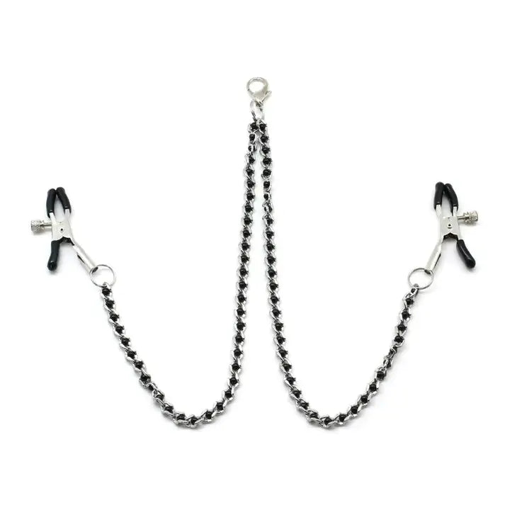 The weighty chain with black beads will give a pleasurable tugging sensation on your nipples via the clamps that can provide everything from a sadistic pinching sensation to a light squeeze. The chains have a quick release clip on them so that they can be attached to any collar that you already have.