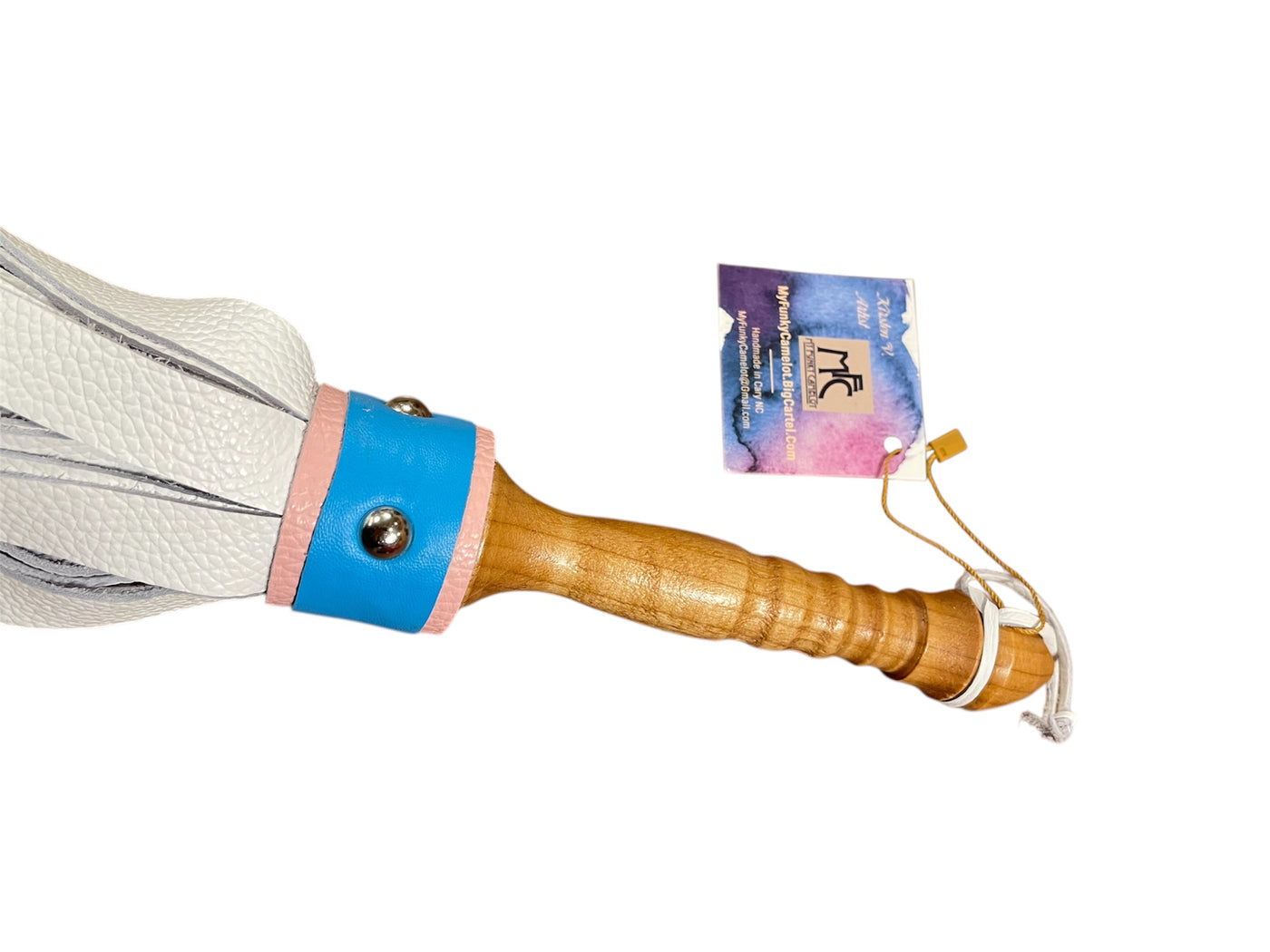 {"id":7472982851682,"title":"Trans Flag Flogger","handle":"trans-flag-flogger","description":"\u003cp\u003eHandmade locally by My Funky Camelot. Genuine leather with lathed reclaimed wood.\u003c\/p\u003e\n\u003cp\u003e35 Falls: .75\" wide\/16\" Long\u003c\/p\u003e\n\u003cp\u003eTotal Length: 24\"\u003c\/p\u003e","published_at":"2025-12-09T17:05:28-05:00","created_at":"2025-12-09T17:05:24-05:00","vendor":"My Funky Camelot","type":"BDSM \u003e Floggers \u0026 Whips","tags":["Color_Blue","Color_Pink","Color_White","Material_Leather","Material_Wood","New Arrivals","Type_Flogger","Type_LGBTQ+"],"price":15000,"price_min":15000,"price_max":15000,"available":true,"price_varies":false,"compare_at_price":null,"compare_at_price_min":0,"compare_at_price_max":0,"compare_at_price_varies":false,"variants":[{"id":42360849891426,"title":"Default Title","option1":"Default Title","option2":null,"option3":null,"sku":null,"requires_shipping":true,"taxable":true,"featured_image":null,"available":true,"name":"Trans Flag Flogger","public_title":null,"options":["Default Title"],"price":15000,"weight":0,"compare_at_price":null,"inventory_quantity":1,"inventory_management":"shopify","inventory_policy":"deny","barcode":"49891426","requires_selling_plan":false,"selling_plan_allocations":[]}],"images":["\/\/friskybusinessboutique.com\/cdn\/shop\/files\/Photoroom_20251209_151420.jpg?v=1765317851","\/\/friskybusinessboutique.com\/cdn\/shop\/files\/Photoroom_20251209_151356.jpg?v=1765317857"],"featured_image":"\/\/friskybusinessboutique.com\/cdn\/shop\/files\/Photoroom_20251209_151420.jpg?v=1765317851","options":["Title"],"media":[{"alt":null,"id":25104882368610,"position":1,"preview_image":{"aspect_ratio":0.75,"height":2400,"width":1800,"src":"\/\/friskybusinessboutique.com\/cdn\/shop\/files\/Photoroom_20251209_151420.jpg?v=1765317851"},"aspect_ratio":0.75,"height":2400,"media_type":"image","src":"\/\/friskybusinessboutique.com\/cdn\/shop\/files\/Photoroom_20251209_151420.jpg?v=1765317851","width":1800},{"alt":null,"id":25104882958434,"position":2,"preview_image":{"aspect_ratio":1.333,"height":1800,"width":2400,"src":"\/\/friskybusinessboutique.com\/cdn\/shop\/files\/Photoroom_20251209_151356.jpg?v=1765317857"},"aspect_ratio":1.333,"height":1800,"media_type":"image","src":"\/\/friskybusinessboutique.com\/cdn\/shop\/files\/Photoroom_20251209_151356.jpg?v=1765317857","width":2400}],"requires_selling_plan":false,"selling_plan_groups":[],"content":"\u003cp\u003eHandmade locally by My Funky Camelot. Genuine leather with lathed reclaimed wood.\u003c\/p\u003e\n\u003cp\u003e35 Falls: .75\" wide\/16\" Long\u003c\/p\u003e\n\u003cp\u003eTotal Length: 24\"\u003c\/p\u003e"}