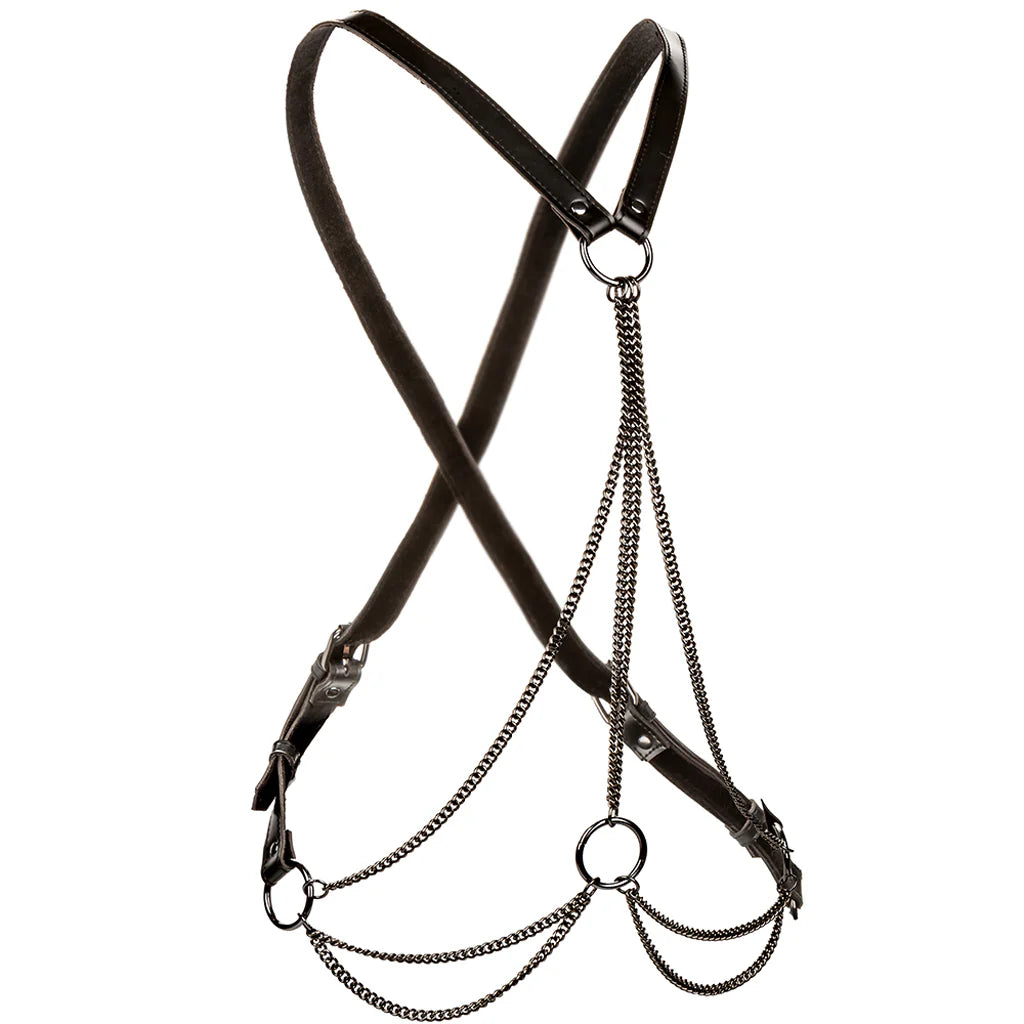 Adjustability meets avant-garde aesthetics as the secure buckle closure ensures a snug and flattering fit for most standard sizes. The ease of customizing your fit means you can immerse yourself in the experience of wearing the harness without any distractions, fully embracing the persona it evokes. The heavy-duty metal chains are a testament to the harness's robustness, promising both functionality and a long-lasting presence in your collection.